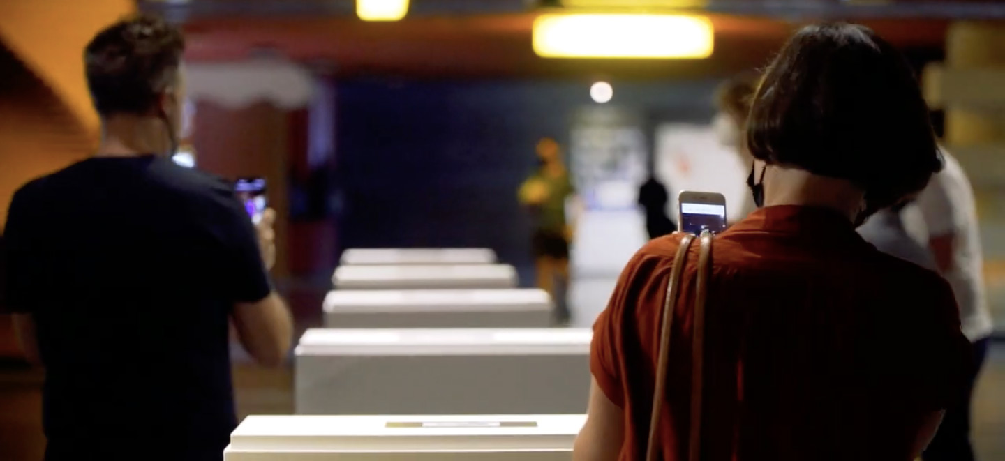 Exposición de la instalación en el Atrio de las Culturas de Azkuna Zentroa – Alhóndiga Bilbao entre el 16 de septiembre y 10 de octubre de 2021.